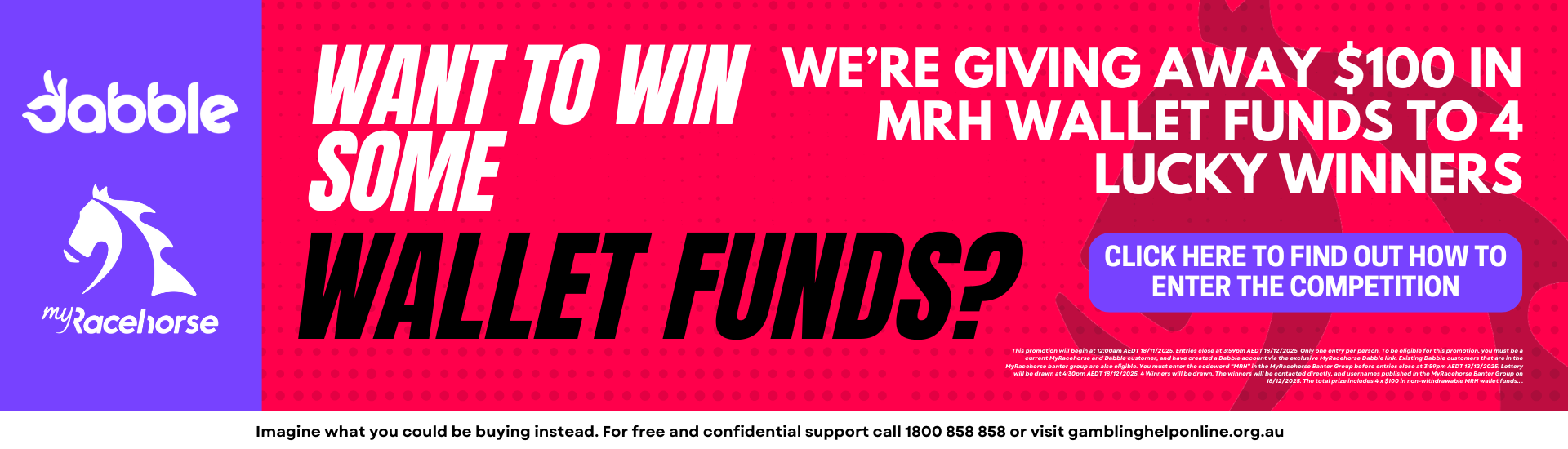 - Free to join, just text 'MYRACEHORSE' to +61 488 885 489
