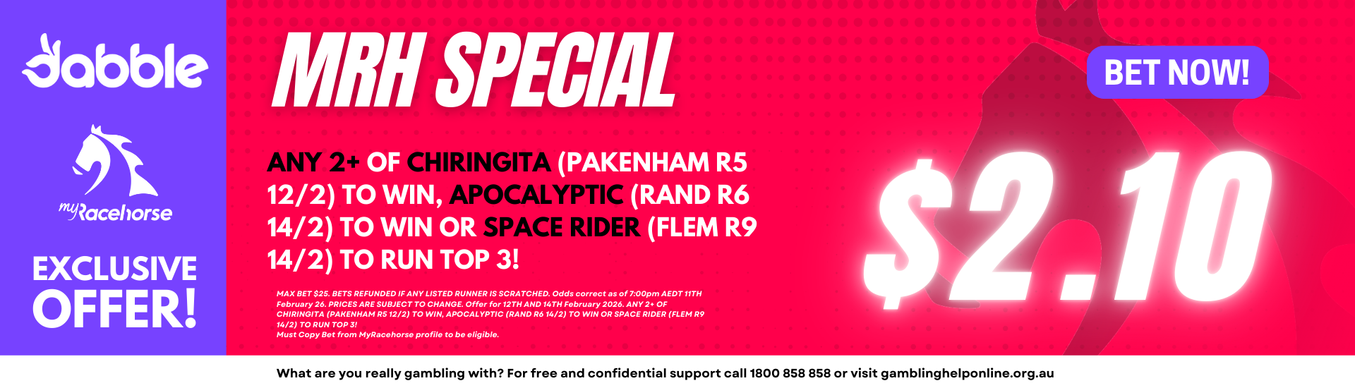 Odds correct as of 11:45am AEDT 12th February.