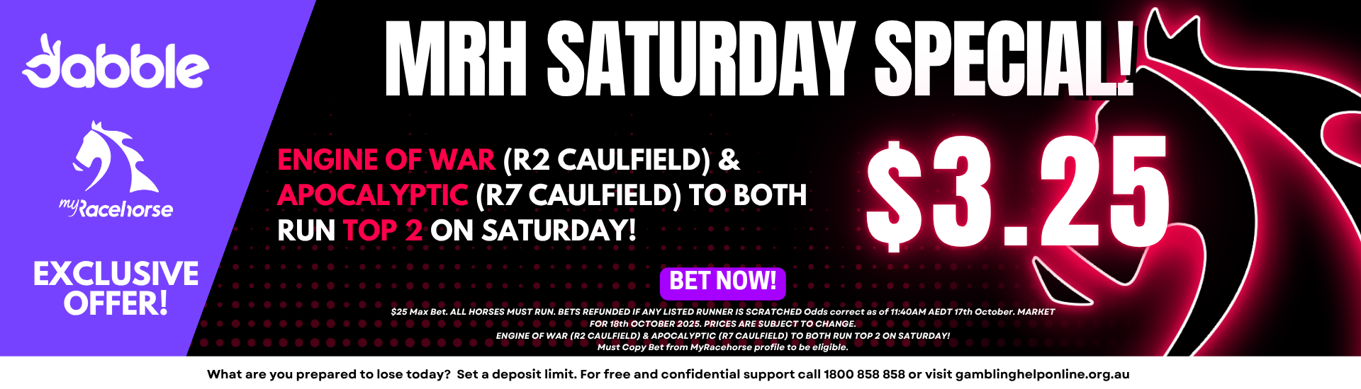 Caulfield Cup and Everest Day. Shaping up to be the day of teh year! Go Apocalyptic and Engine Of War.