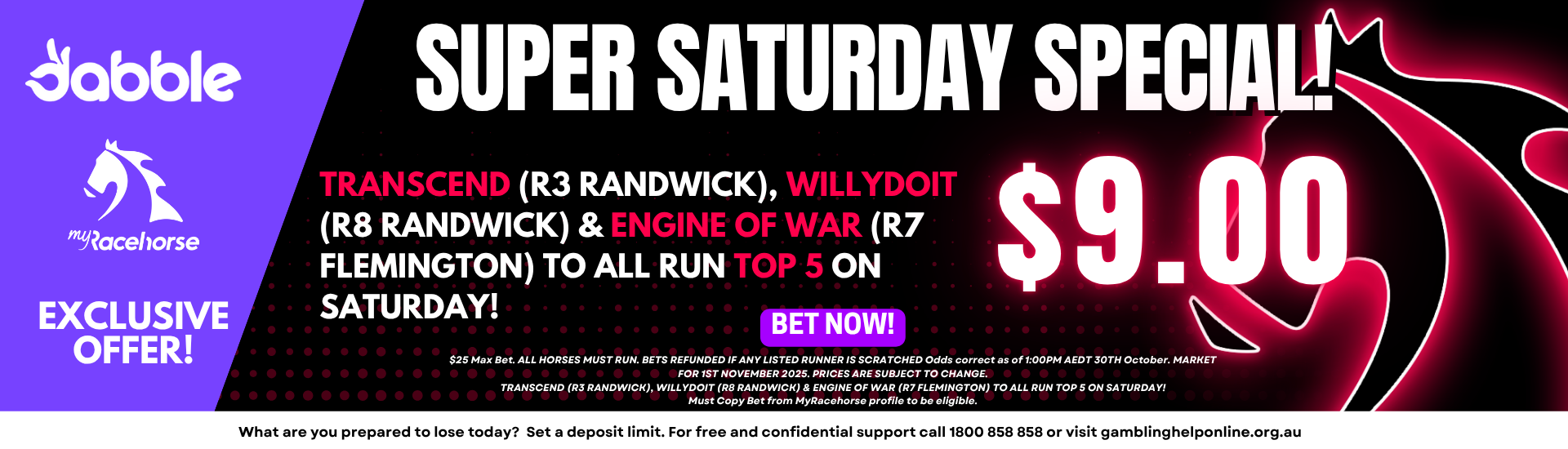 Draws a barrier (2) and will get in behind West Of Swindon, who will inject some pace into the race. He’s the class horse in the race and has been out of luck recently. Should be shorter. Good way to kick off the Melbourne Cup Carnival!