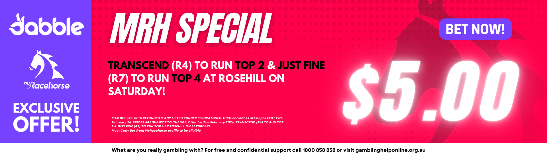 Odds correct as of 1:30pm AEDT 19th February.
