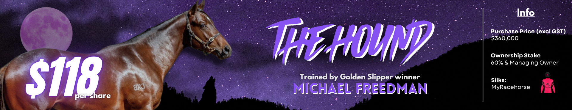Wootton Basset finished second in the first season sires table and fourth in the overall 2-year-old sires table for the 2024/25 racing season, illustrating his global dominance as a sire in both the northern and southern hemispheres. To make sure we didn’t miss out on the fun, our bloodstock team made sure to introduce his progeny into the MyRacehorse stable. Introducing: The Hound.